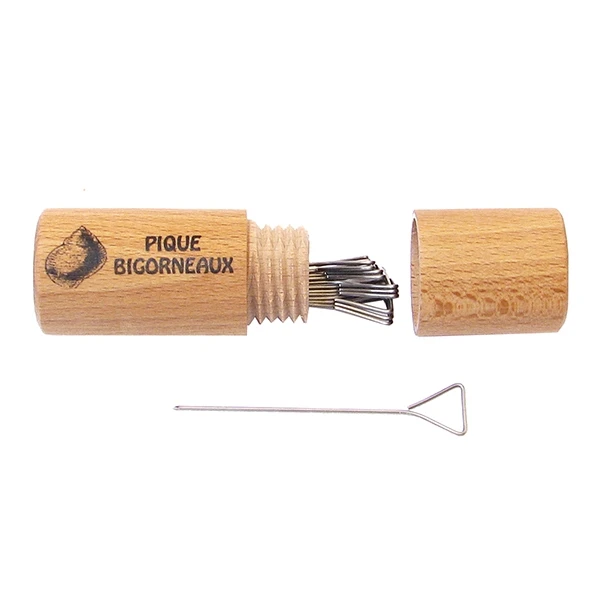 Les 12 piques à bigorneaux dans leur fourreau en bois de hêtre sont utiles pour attraper les fruits de mer qui se cachent tout au fond de leur coquille ! Ces piques en inox iront dans les recoins, là où vos doigts et les fourchettes ne peuvent pas aller. Ces petits ustensiles élégants sont rangés dans leur fourreau en bois de hêtre de qualité.