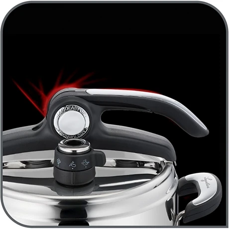 Dans les méthodes de cuisson les plus saines, les autocuiseurs font partie du haut du panier : pas de graisse et une préservation optimale de toutes les vitamines et nutriments. L’autocuiseur 7 L Novia Lagostina a été conçu pour maximiser cette dimension de conservation des valeurs nutritionnelles des aliments avec un système de cuisson à deux programmes qui sont calibrés à la température idéale. Le premier vous servira pour les légumes et autres aliments fragiles qui demandent une intensité plus faible, le deuxième pour les viandes et surgelés. Grâce à son fond épais enveloppant, la chaleur se diffusera uniformément pour une cuisson homogène et très rapide. Mettez vos aliments, fermez l’autocuiseur, observer la pression sur l’indicateur et vous n’aurez plus qu’à attendre quelques minutes pour déguster des plats sains préparez en express.