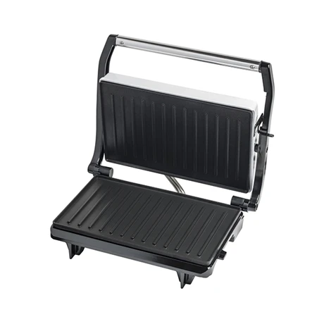 Le grill à panini et viande vous permettra de faire griller vos paninis, viande, poisson ou encore vos légumes… Faites griller vos aliments en un rien de temps sans graisse, pour une cuisson plus saine. Sa forme vous permettra de griller vos aliments des deux côtés notamment avec son couvercle qui peut se verrouiller. Fonctionne très simplement avec son témoin lumineux indiquant la mise en route. Offre de larges dimensions vous permettant de cuire de nombreux aliments simultanément. La stabilité de l’appareil est assurée par ses pieds antidérapant.