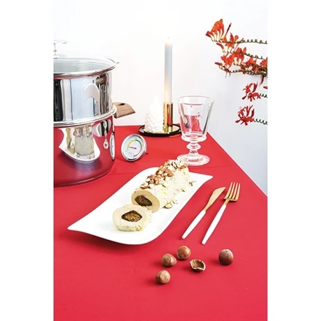 – d’un couvercle bombé en verre borosilicate ultra résistant, avec thermomètre de contrôle des différentes zones de cuisson. Grâce à sa forme étudiée, l’eau de condensation coule le long du couvercle et des parois pour ne pas détremper les aliments en cours de cuisson