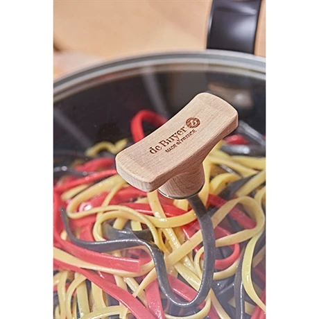 Doté d’une poignée en bois de hêtre issu des forêts des Vosges, il se manipule facilement et se pose sur le plan de travail sans salir ce dernier.