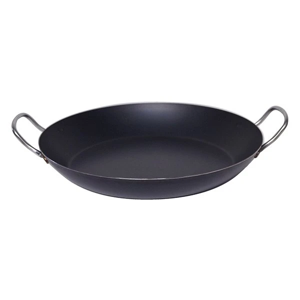 Cette poêle à paëlla en tôle d’acier 37 cm est idéale pour préparer des plats familiaux en grande quantité comme les paëllas, les choucroutes… mais aussi pour saisir, griller ou dorer des émincés de viandes, de poissons ou des oeufs. En tôle d’acier bleuie par traitement thermique, cette poêle offre une protection contre l’oxydation et ne dispose d’aucun revêtement. Sa coupe lyonnaise permet de faire glisser facilement les aliments et de la manier sans effort. La tôle d’acier permet une montée rapide en température et le culottage progressif donne une anti-adhérence naturelle. Ses deux anses permettent de déplacer la poêle facilement, même quand elle est remplie !