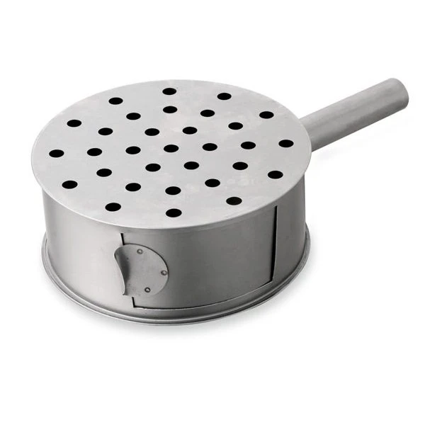 Ce diable traditionnel à châtaignes et marrons est en en tôle d’acier. Il donne ainsi une dorure et un croustillant sans pareil aux châtaignes et marrons. La tôle d’acier devient naturellement antiadhésive après culottage. Ce diable à chataîgnes spécial cheminée est fermé par une plaque percée afin de pouvoir le retourner et garantir une cuisson optimale. Un volet d’ouverture latérale permet d’accéder aux chataîgnes et marrons. Fabrication française. Garantie 3 ans.