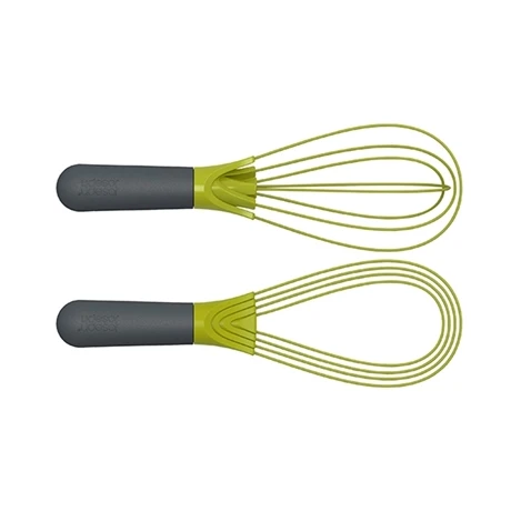 Le fouet 2 en 1 Joseph Joseph avec sa forme modifiable permet de s’utiliser comme fouet plat ou fouet ballon. Le fouet plat est pratique pour mélanger les sauces et les jus dans un récipient avec peu de contenance. Alors que sa forme traditionnelle en ballon est idéale pour fouetter ou mélanger les œufs ou autres préparations. Grâce à sa matière en silicone, le fouet 2 en 1 Joseph Joseph se nettoie très facilement. Pour changer le fouet de forme, il suffit de tourner la poignée d’un côté ou de l’autre. En forme plate, le fouet offre un rangement compact, aisément rangeable dans un tiroir de votre cuisine.