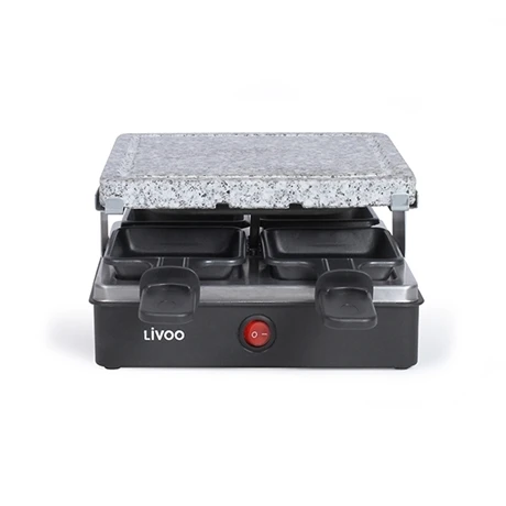L’appareil à raclette 4 personnes LIVOO prodigue un moment de partage avec la préparation simultanée de vos raclettes et du gril. Il s’assigne à des repas réussis avec sa pierre à gril de 20cm par 20cm qui garantit une cuisson parfaite des aliments. Avec son plateau en granit amovible et ses 4 caquelons à revêtement antiadhésif, il est très facile à nettoyer et à ranger. L’appareil présente un interrupteur ON/OFF, ainsi que des pieds antidérapants pour assurer votre sécurité.