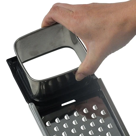 Le réservoir accueille la pâte que vous avez préalablement préparée et sert également pour faire un mouvement de va et vient et couper les pâtes afin qu’elles se détachent et tombent. Pratique, la râpe est équipée de rebords sur les côtés pour que le réservoir coulisse facilement.