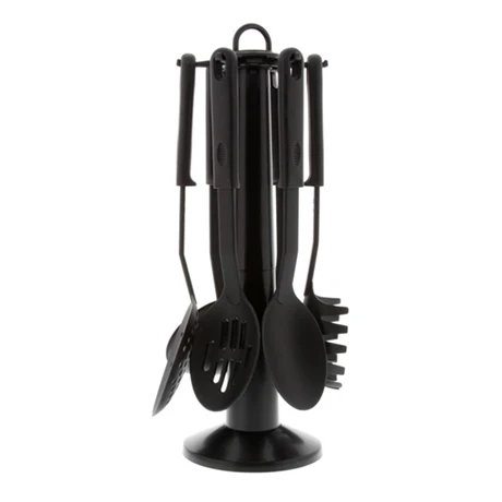 Pour faciliter la préparation des repas, la penderie 6 ustensiles noire Pradel Excellence permet d’avoir tous les ustensiles utiles sous la main, bien en place sur le plan de travail ou près du poste de cuisson. Complète, elle se compose d’une louche, d’une spatule ajourée, d’une cuillère de service, d’une cuillère à sauce, d’une cuillère à spaghetti et d’un écumoire, le tout suspendu à un support qui ne prend pas de place dans la cuisine.