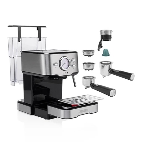 La machine à expresso 1100 W 01.249412.01.001 et à capsules est parfaite pour déguster de délicieuses tasses de café fraîchement préparées. Pratique et indispensable, la machine permet de préparer du café moulu ainsi que des capsules Nespresso. Vous pouvez préparer un ou deux expressos simultanément grâce à la pompe 20 bar. De plus, la machine a une buse à vapeur pour vous permettre de savourer de tendres cappuccinos avec nuage de lait, des latte ou encore des expresso macchiato.