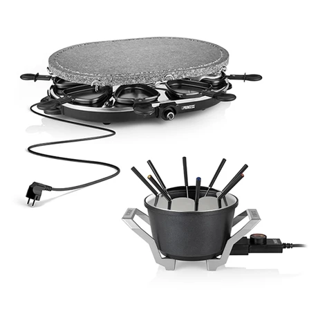 Le lot Princess contenant un appareil à raclette et un appareil à fondue pour 8 personnes est idéal pour passer des moments conviviaux avec vos proches autour d’un repas réconfortant.