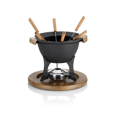 Avec son design authentique et ses touches de bois d’acacia, le service à fondue country est parfait pour préparer des fondues pour 6 personnes. Plat réconfortant et convivial par excellence, la fondue au fromage se prépare facilement grâce à cet appareil complet.